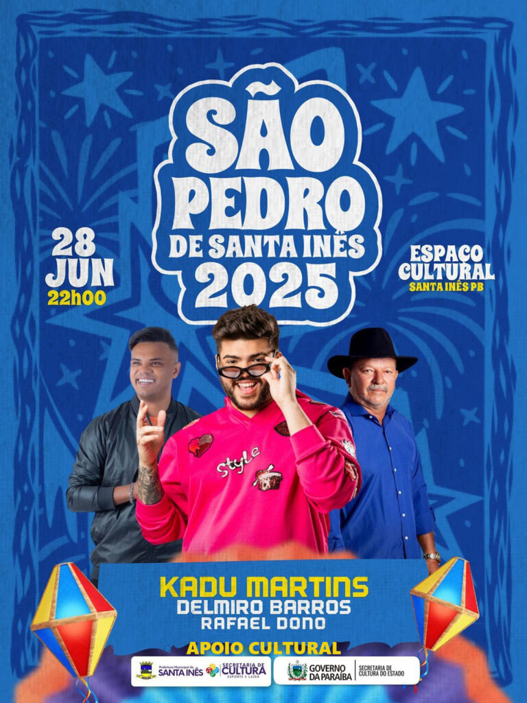O clima de festa já toma conta de Santa Inês – PB! No próximo sábado, 28 de junho, a cidade vai celebrar com muito forró e animação o tradicional São Pedro de Santa Inês, a partir das 22h, no Espaço Cultural. A programação deste ano promete agitar o público com três grandes atrações: Rafael Dono, […]