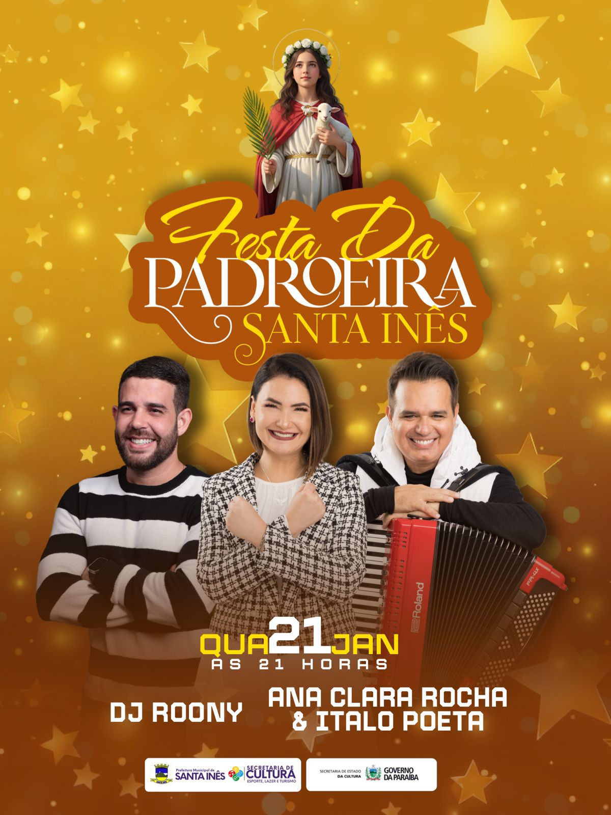 A Festa da Padroeira é uma realização da Prefeitura Municipal de Santa Inês, por meio da Secretaria de Cultura, Esporte, Lazer e Turismo, com apoio da Secretaria de Estado da Cultura e do Governo da Paraíba, reforçando o compromisso com a valorização da cultura popular, da religiosidade e do entretenimento de qualidade.